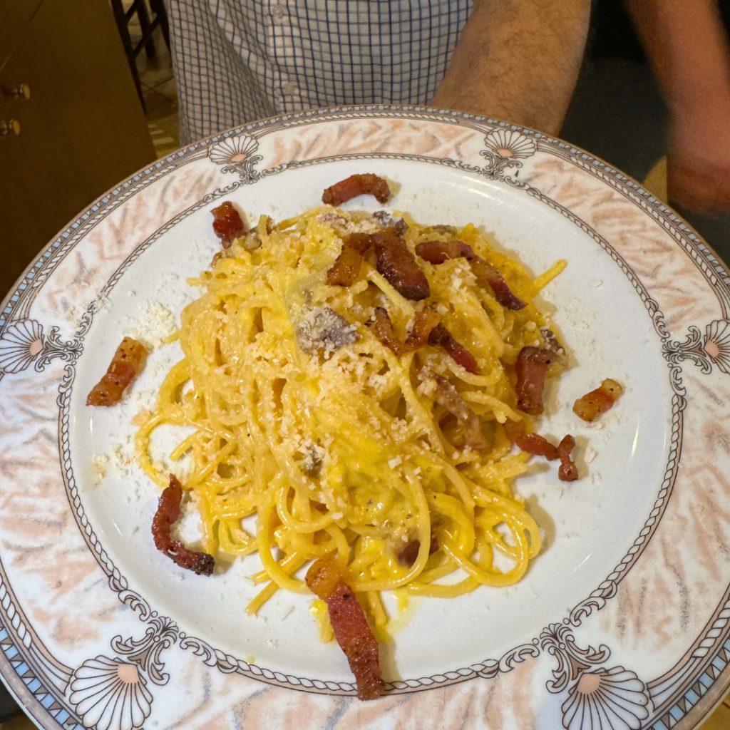(eggs, guanciale, pecorino cheese, black pepper, parmesan)
